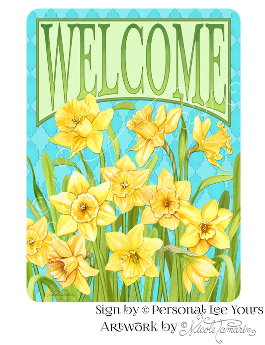 Nicole Tamarin Exclusive Sign * Daffodil Welcome * 2 Sizes * Lightweight Metal