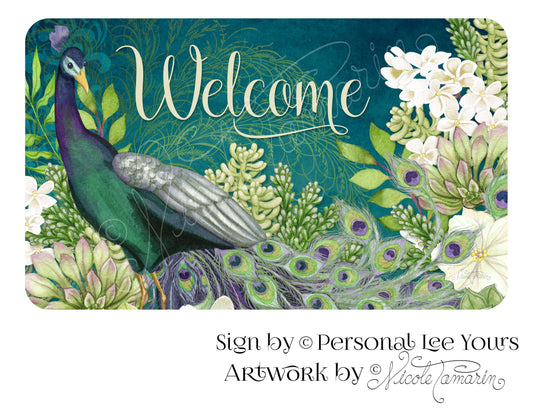 Nicole Tamarin Exclusive Sign * Emerald Peacock Welcome * 3 Sizes * Lightweight Metal