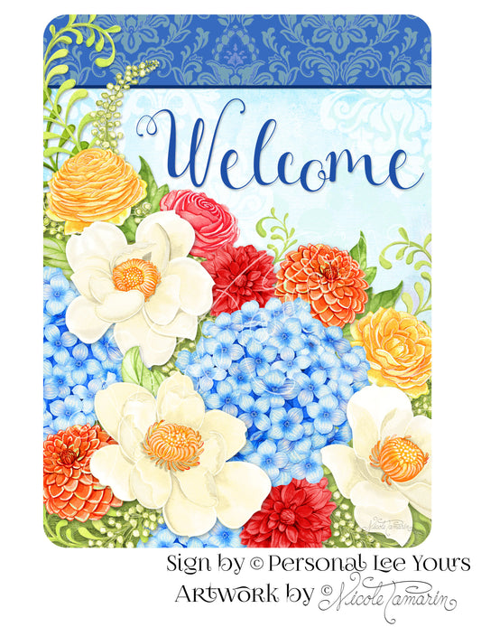 Nicole Tamarin Exclusive Sign * Bright Bloom Welcome * 2 Sizes * Lightweight Metal