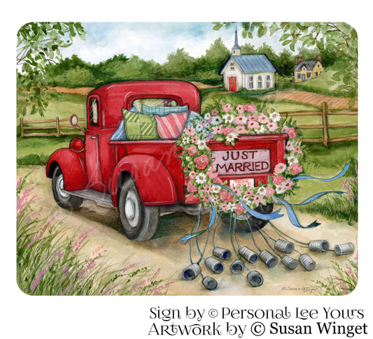 Susan Winget Exclusive Sign * Just Married * Red Truck * 2 Sizes * Lightweight Metal