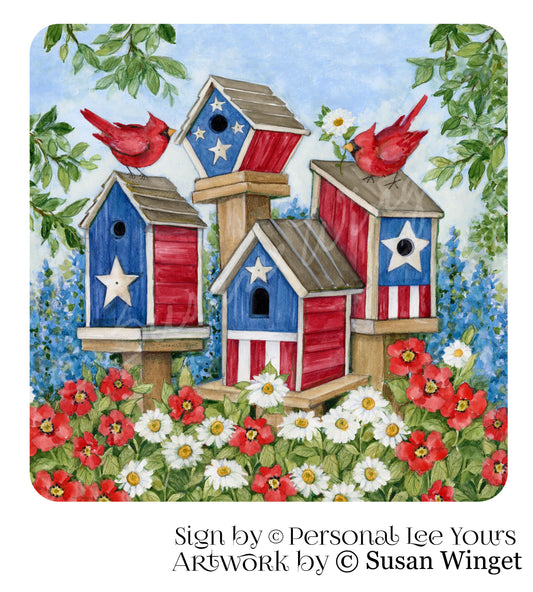 Susan Winget Exclusive Sign * Patriotic Birdhouses * Square * 3 Sizes * Lightweight Metal