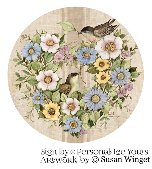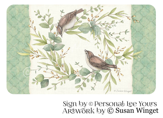 Susan Winget Exclusive Sign * Eucalyptus Wreath With Birds * 3 Sizes * Lightweight Metal