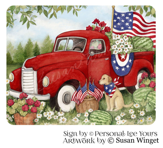 Susan Winget Exclusive Sign * Old Glory And The Red Truck * 2 Sizes * Lightweight Metal