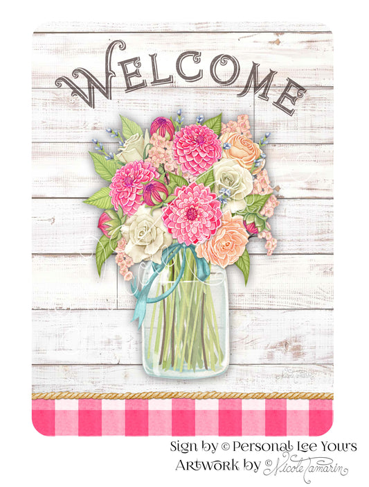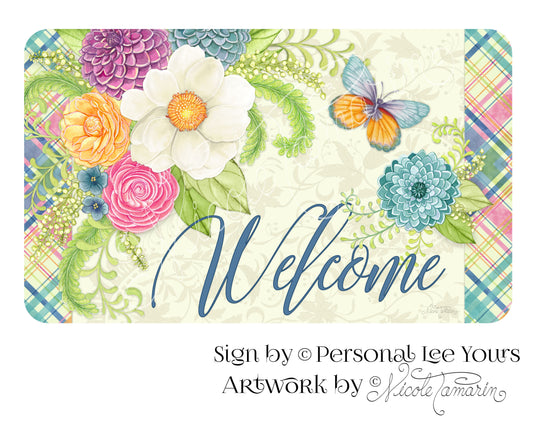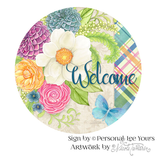Nicole Tamarin Exclusive Sign * Farmhouse Flowers * Welcome * 2 Sizes * Lightweight Metal