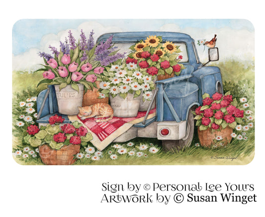 Susan Winget Exclusive Sign * Flower Truck * Blue * 3 Sizes * Lightweight Metal