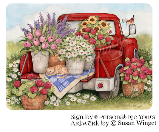 Susan Winget Exclusive Sign * Flower Truck * Red * 2 Sizes * Lightweight Metal