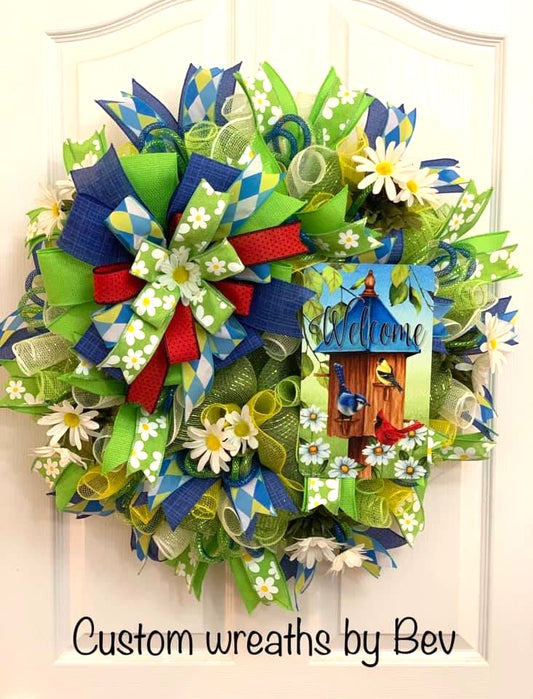 Welcome Wreath Sign * Bird Trio * 3 Sizes * Lightweight Metal
