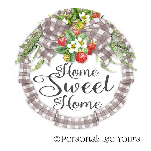 Metal Wreath Sign * Grey Bow * Home Sweet Home * Strawberries * Round * Lightweight