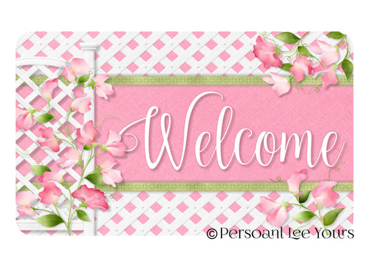 Wreath Sign * Sweet Pea Welcome * 3 Sizes * Lightweight Metal