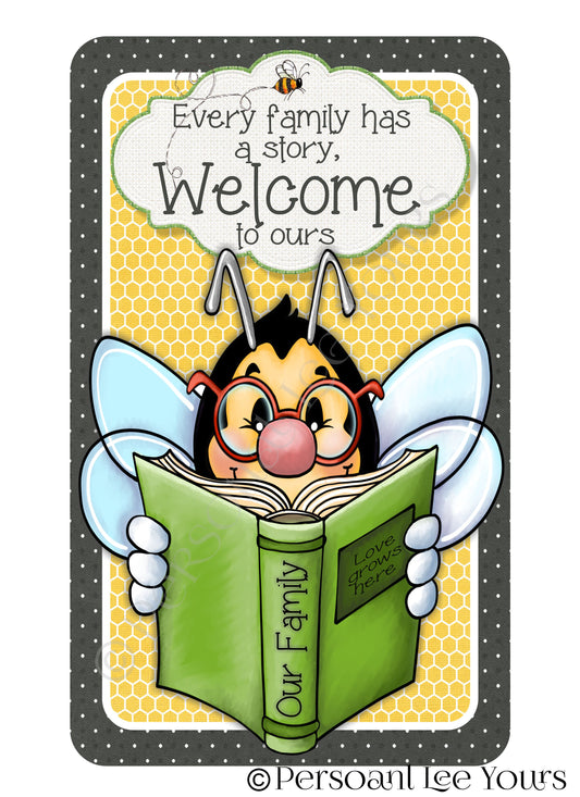 Bee Wreath Sign * Every Family Has A Story, Welcome To Ours * 3 Sizes * Lightweight Metal
