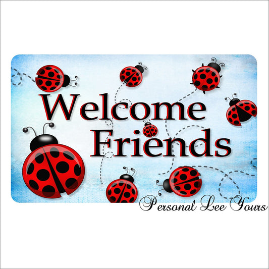 Metal Wreath Sign * Ladybug Welcome Friends * 3 Sizes * Lightweight