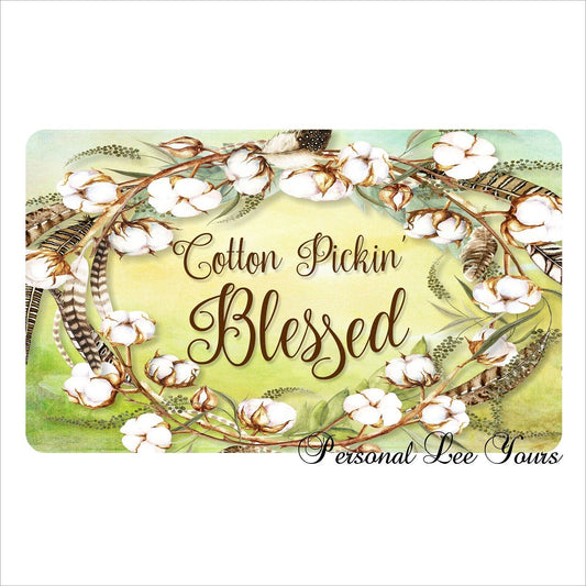 Metal Wreath Sign * Cotton Pickin' Blessed * 3 Sizes * Lightweight