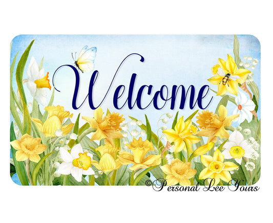 Metal Wreath Sign * Daffodil Welcome * 3 Sizes * Lightweight