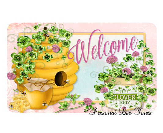 Wreath Sign * A Sweet Welcome * Honey Bees * 3 Sizes * Lightweight Metal