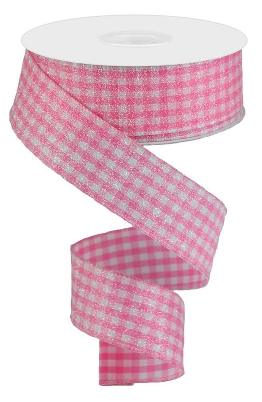 Wired Ribbon * Glitter Gingham Check * Pink and White Canvas * 1.5" x 10 Yards * RGA179622