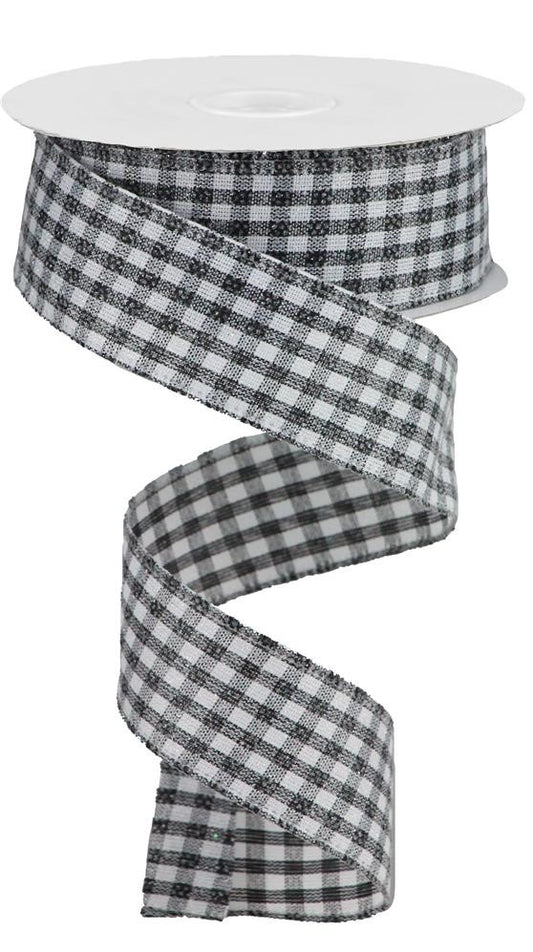 Wired Ribbon * Glitter Gingham Check * Black and White Canvas * 1.5" x 10 Yards * RGA179402
