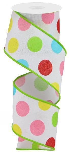Wired Ribbon * Polka Dots * White, Red, Pink Yellow, Green and Blue Canvas * 2.5" x 10 Yards * RGA1663AY