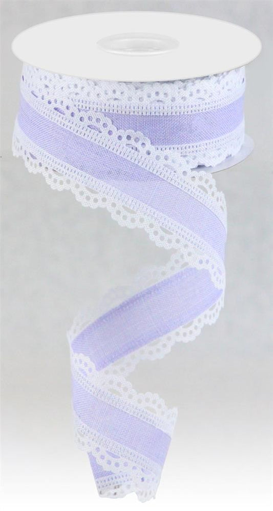 Wired Ribbon * Scalloped Edge * Light Lavender and White Canvas * 1.5" x 10 Yards * RGA1541NR