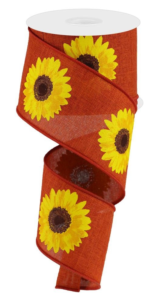 Wired Ribbon * Bold Sunflowers * Rust, Yellow, Orange and Brown * 2.5" x 10 Yards * RG0181374