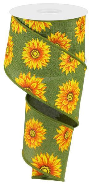 Wired Ribbon * Multi Sunflowers * Green, Yellow, Orange, Rust and Brown * 2.5" x 10 Yards * RG0187344