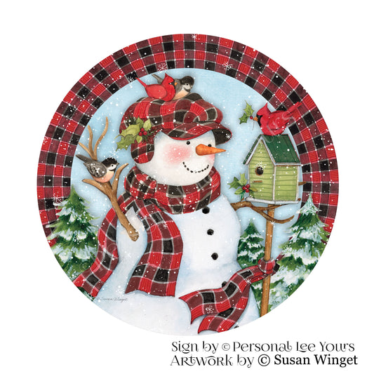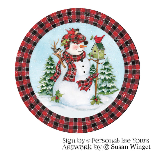 Susan Winget Exclusive Sign * Lodge Snowman ~ Full Body * Round * Lightweight Metal
