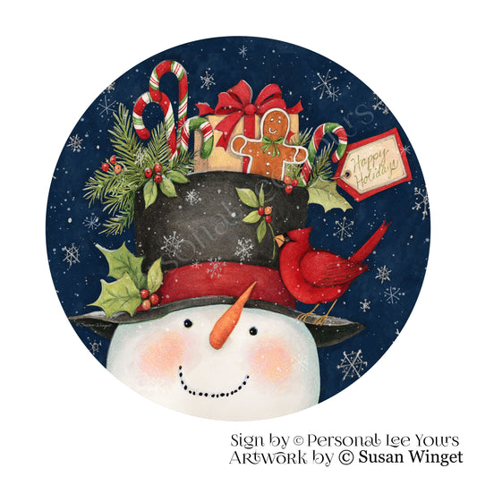Susan Winget Exclusive Sign * Top Hat Snowman * Round * Lightweight Metal