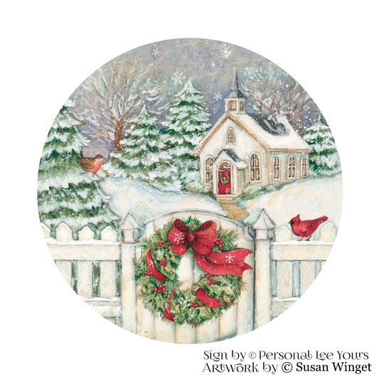 Susan Winget Exclusive Sign * Farmhouse * Holly Cardinals * Round * Lightweight Metal