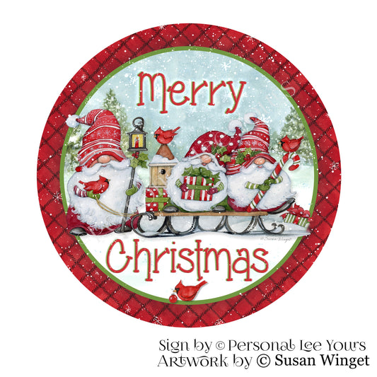 Susan Winget Exclusive Sign * Merry Christmas Gnomes * Sled * Round * Lightweight Metal