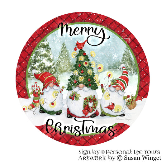 Susan Winget Exclusive Sign * Merry Christmas Gnomes * Tree * Round * Lightweight Metal