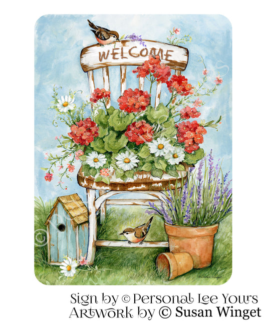 Susan Winget Exclusive Sign * Geranium Chair * 2 Sizes * Lightweight Metal
