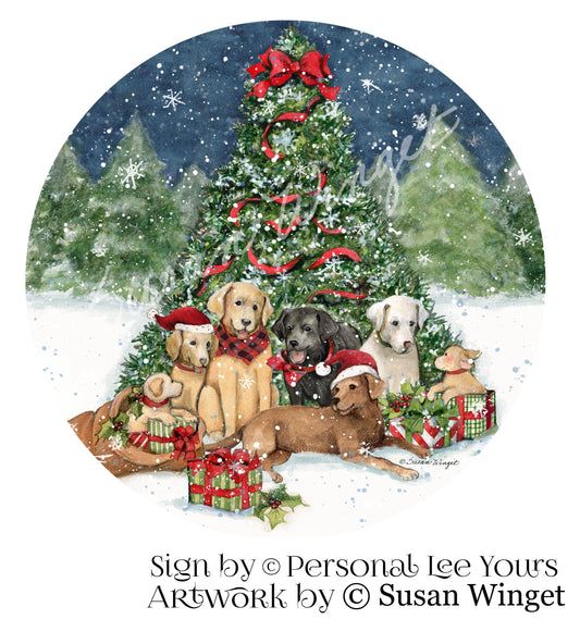 Susan Winget Exclusive Sign * Christmas K9 Family * Round * Lightweight Metal