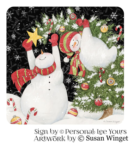 Susan Winget Exclusive Sign * Decorating The Tree * Snowman * 3 Sizes * Lightweight Metal