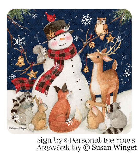 Susan Winget Exclusive Sign * Snowman & Friends In The Forest * 3 Sizes * Lightweight Metal