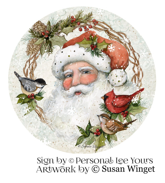 Susan Winget Exclusive Sign * Santa Wreath * Round * Lightweight Metal