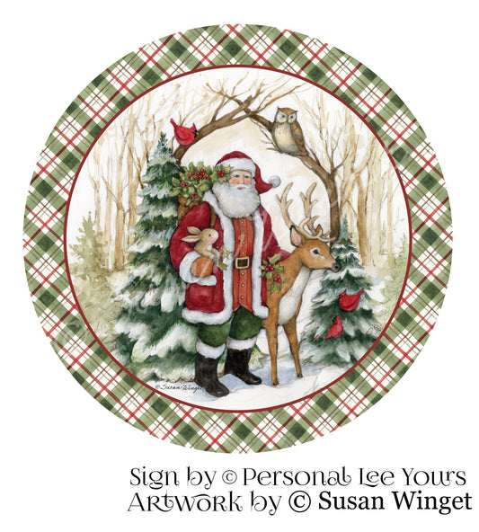 Susan Winget Exclusive Sign * Woodland Santa in Arch * Round * Lightweight Metal