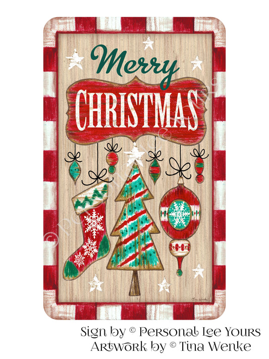 Tina Wenke Exclusive Sign * Farmhouse Christmas * Merry Christmas * Stocking, Tree, Ornament * 3 Sizes * Lightweight Metal