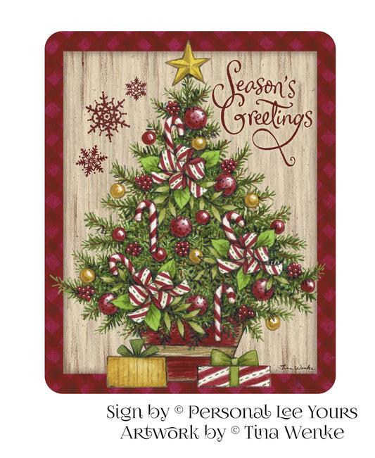 Tina Wenke Exclusive Sign * Season's Greetings * Christmas Tree * Vertical * 2 Sizes * Lightweight Metal