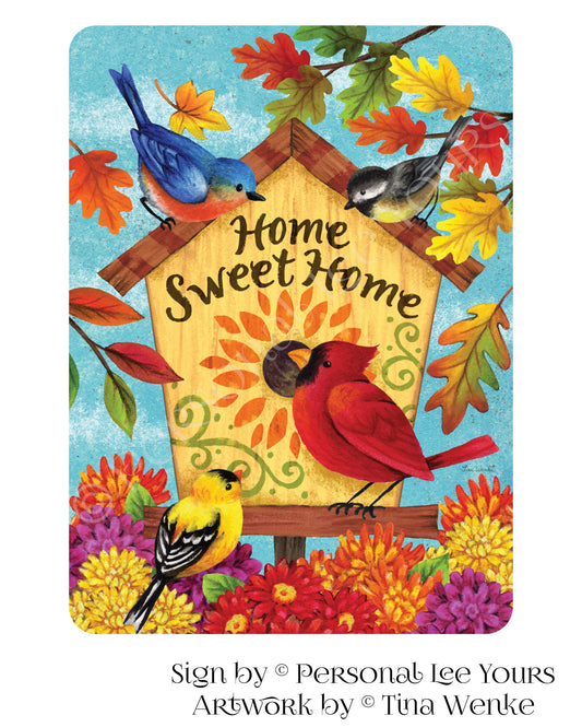 Tina Wenke Exclusive Sign * Fall Songbirds * Home Sweet Home * Vertical * 2 Sizes * Lightweight Metal