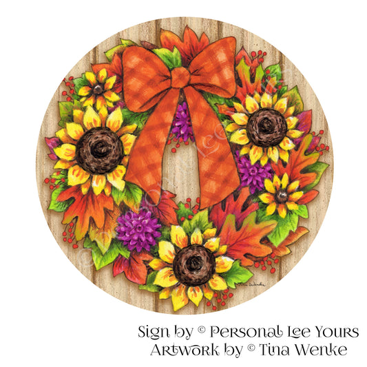 Tina Wenke Exclusive Sign * Fall Sunflower Wreath * Round * Lightweight Metal