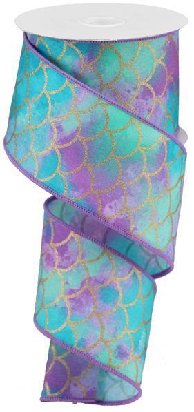 Wired Ribbon * Scales On Watercolors * Aqua, Purple, Teal and Gold * 2.5" x 10 Yards Canvas * RGA1987XC