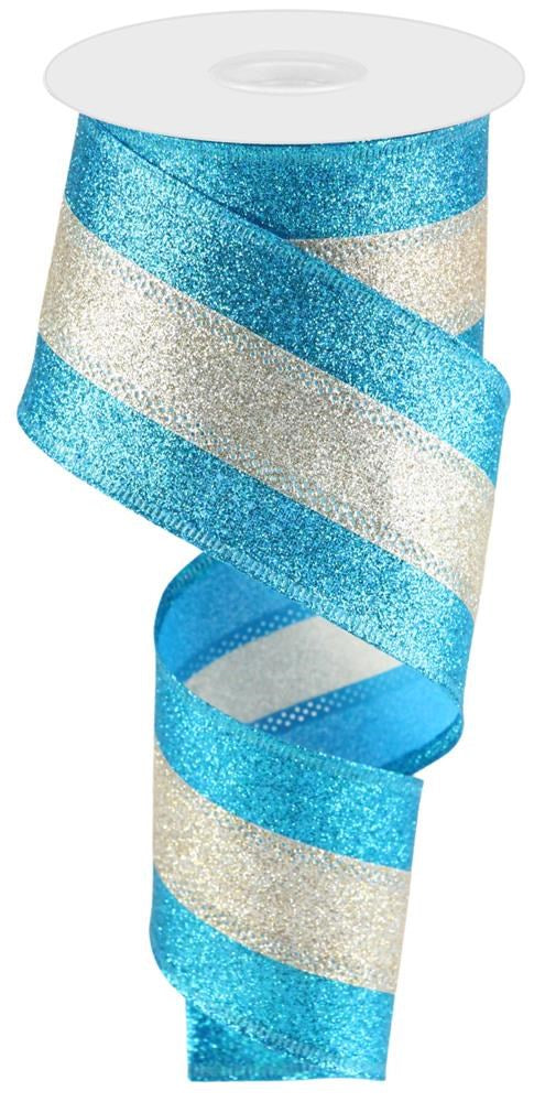 Wired Ribbon * 3 in 1 * Shimmer Glitter Stripe * Turquoise and Champagne Canvas * 2.5" x 10 Yards * RGA8220N4