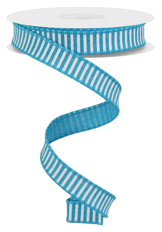 Wired Ribbon * Horizontal Stripes * Turquoise and White Canvas * 5/8" x 10 Yards * RGE1267A2