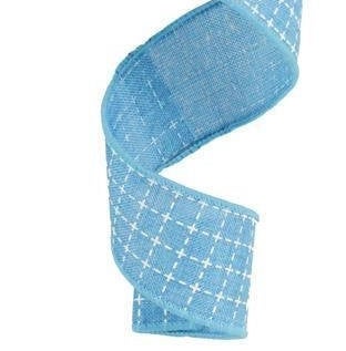 Wired Ribbon * Raised Stitched Squares * Turquoise and White * 1.5" x 10 Yards * Canvas * RG01677A2