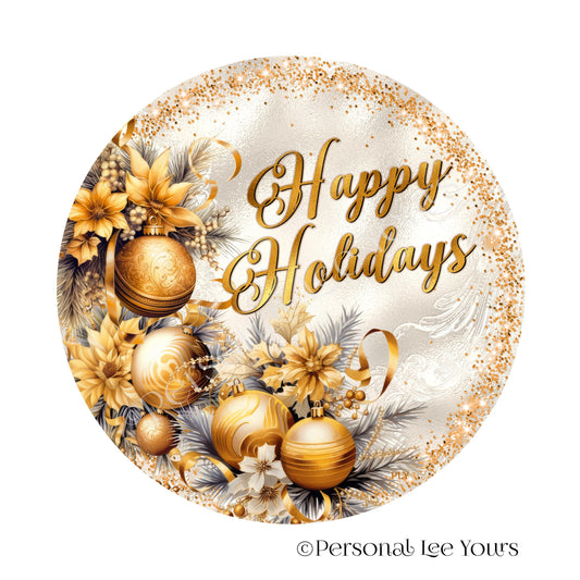 Christmas Wreath Sign * Happy Holidays In Gold * Round * Lightweight Metal