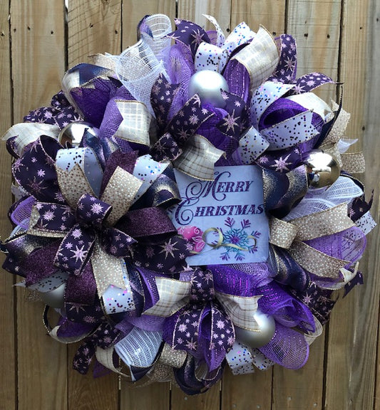 Holiday Wreath Sign * Merry Christmas in Purple * 3 Sizes * Lightweight Metal