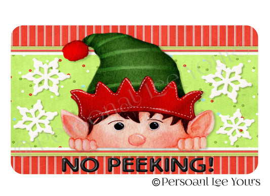 Holiday Wreath Sign * Christmas Elf * No Peeking * 3 Sizes * Lightweight Metal