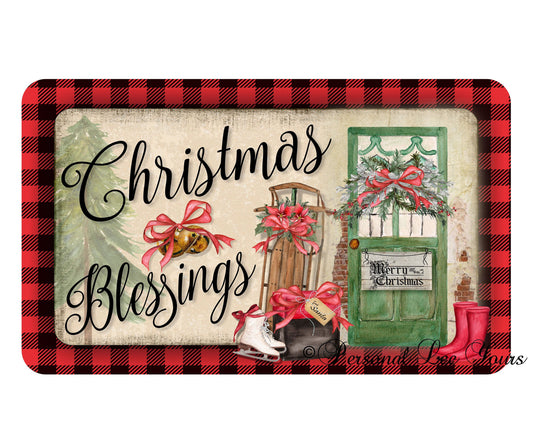 Wreath Sign * Christmas Blessings 2 * 3 Sizes * Lightweight Metal