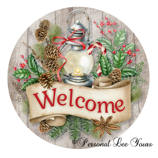 Holiday Wreath Sign * Christmas Welcome * Round * Lightweight Metal