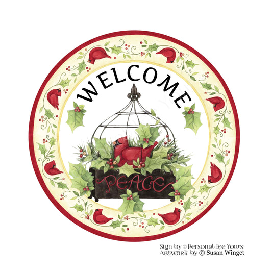 Susan Winget Exclusive Sign * Cardinal Welcome * Round * Lightweight Metal