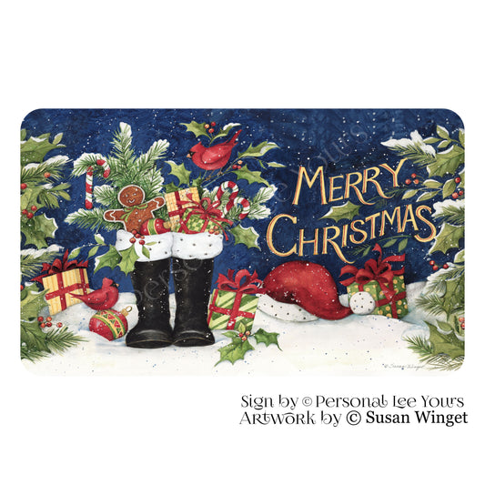 Susan Winget Exclusive Sign * Christmas Boots * Horizontal * 4 Sizes * Lightweight Metal